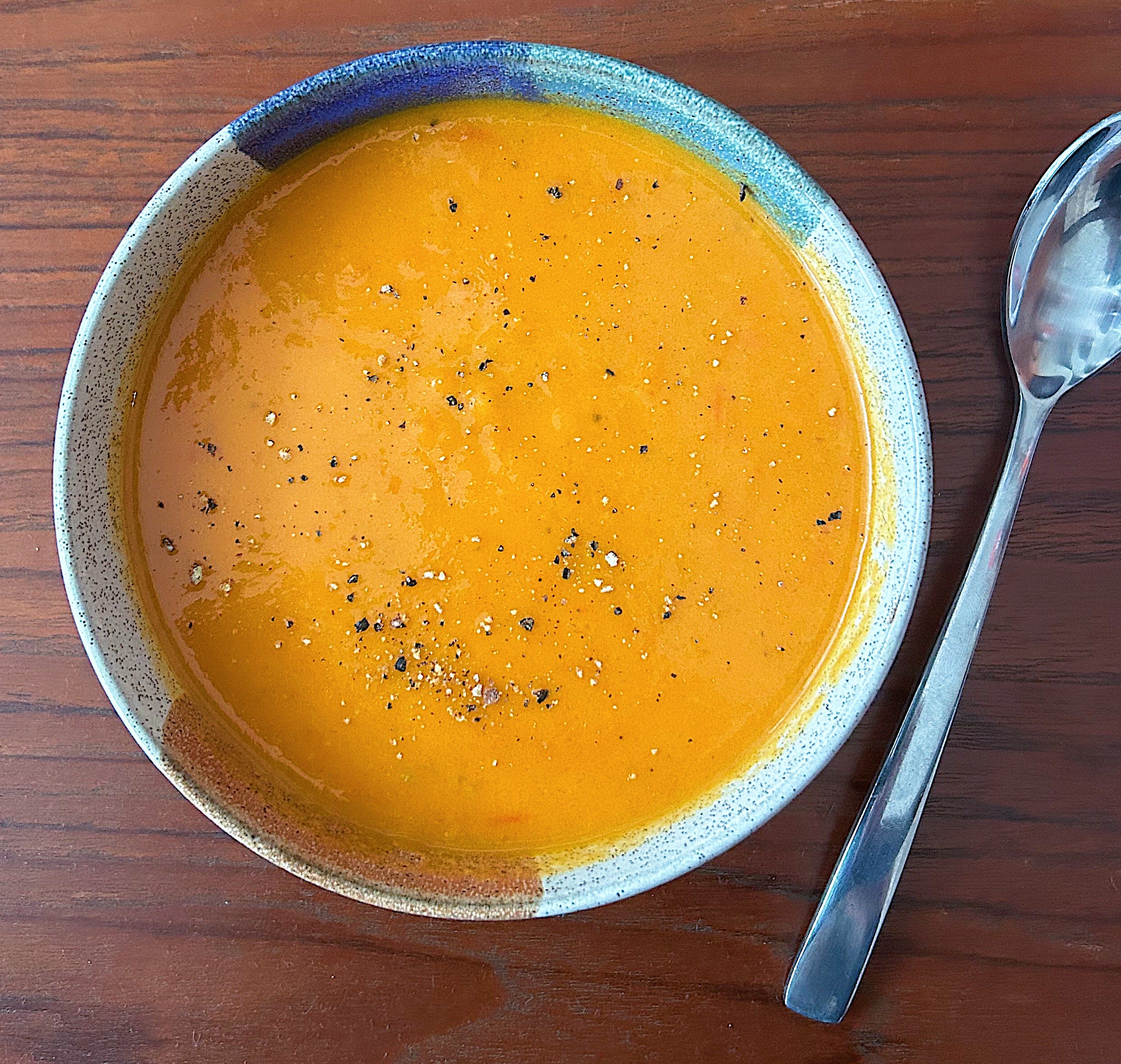 There really is nothing simpler to cook up. There aren’t many ways to do it, and probably very few ways to get it badly wrong. My standard formulation - deployed here - is to take delicious ingredients, roast them until they’re even more delicious, then pop into a pot, add stock and blitz. There are endless options.